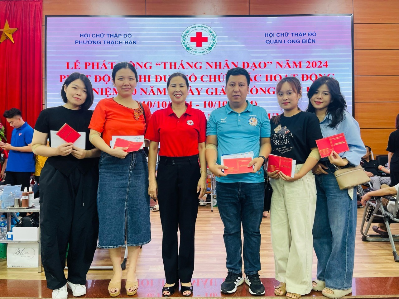 Một số hình ảnh của cán bộ giáo viên nhân viên trường Tiểu học Thạch Bàn A trong ngày hiến máu tình nguyện 21/4/2024: