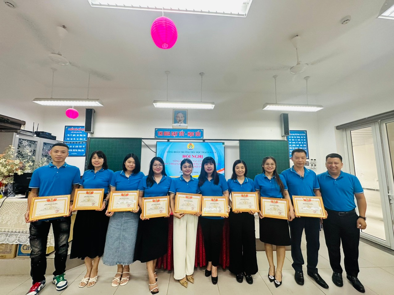 Bên cạnh đó, Công đoàn trường Tiểu học Thạch Bàn A đã tổ chức phát động thi đua chào mừng 95 năm thành lập Công đoàn Việt Nam với 9 nội dung thi đua.