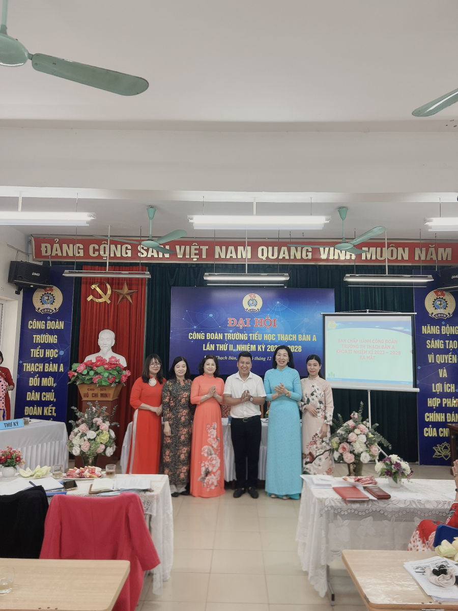 Thực hiện Điều lệ Công đoàn Việt Nam và sự chỉ đạo của Liên đoàn lao động quận Long Biên về việc tổ chức Đại hội Công đoàn cơ sở nhiệm kỳ 2022-2028. Sau một thời gian chuẩn bị tích cực, khẩn trương, với tinh thần trách nhiệm cao, được sự đồng ý của Liên đoàn Lao động quận Long Biên và lãnh đạo cấp ủy Đảng, Ban giám hiệu trường TH Thạch Bàn A, sáng ngày 26/12/2022, Công đoàn trường TH Thạch Bàn A đã tổ chức thành công Đại hội Công đoàn khóa II, nhiệm kỳ 2023 - 2028.