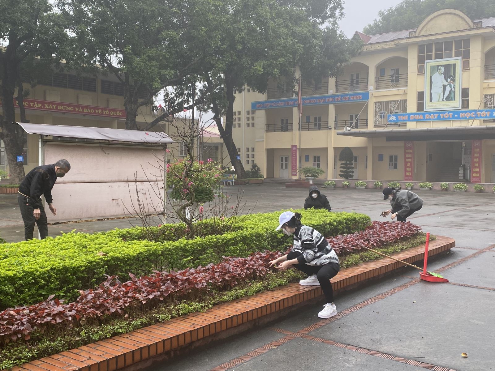 Một số hình ảnh lao động vệ sinh trong nhà trường:
