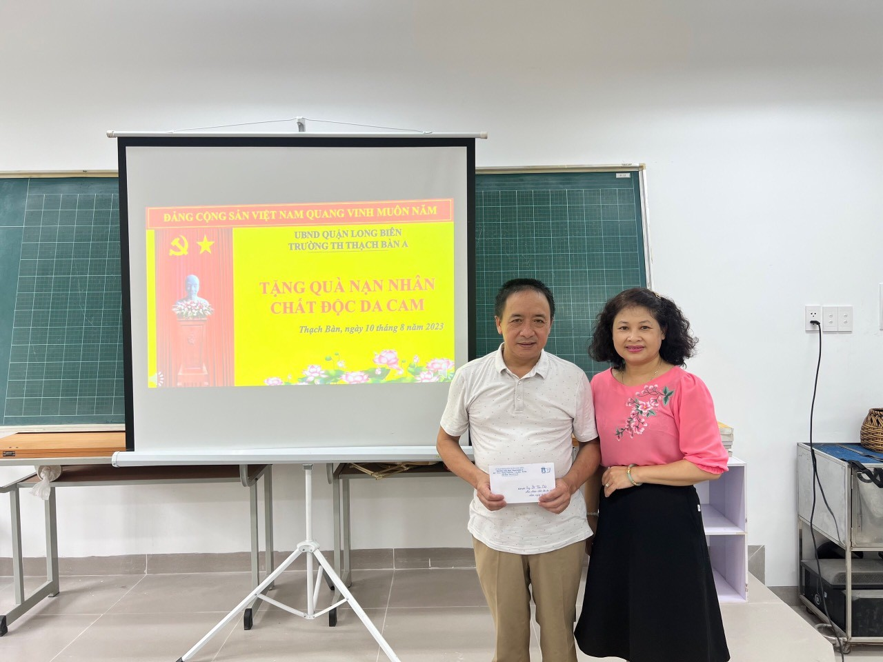Chiến tranh đã lùi xa nhiều thập kỷ nhưng hậu quả của chất độc hóa học do quân đội Mỹ gây ra vẫn hiện hữu tại Việt Nam. Không chỉ hành hạ cơ thể nhiều cựu chiến binh Việt, chất độc da cam còn khiến con, cháu họ rơi vào cảnh bệnh tật, dị dạng, khiến cuộc sống gia đình khó khăn chồng chất khó khăn. Những năm qua, bằng nhiều nguồn lực và hành động thiết thực, Đảng, Nhà nước và nhân dân ta đã cùng chăm lo, hỗ trợ, tạo điều kiện về mọi mặt để các nạn nhân chất độc da cam và gia đình có thêm động lực vượt qua khó khăn, bệnh tật, ổn định cuộc sống, hòa nhập cộng đồng. Nhân kỷ niệm 62 năm thảm họa da cam Việt Nam, chi hội Chữ thập đỏ trường Tiểu học Thạch Bàn A phối hợp với Hội Chữ thập đỏ phường Thạch Bàn đã tổ chức thăm hỏi ông Đỗ Văn Thể - Địa chỉ: tổ 15 phường Thạch Bàn là nạn nhân chất độc da cam. Từ nhiều năm qua, chi hội Chữ thập đỏ nhà trường đã duy trì hỗ trợ thường xuyên cho ông Đỗ Văn Thể với số tiền là 200.000đ/tháng x 12 tháng và tặng quà nhân Ngày nạn nhân chất độc da cam 10/8 là 200.000đ. Tổng số tiền chi hội Chữ thập đỏ trường Tiểu học Thạch Bàn A đã tặng quà đợt này cho ông Đỗ Văn Thể là 2,600.000 đồng.