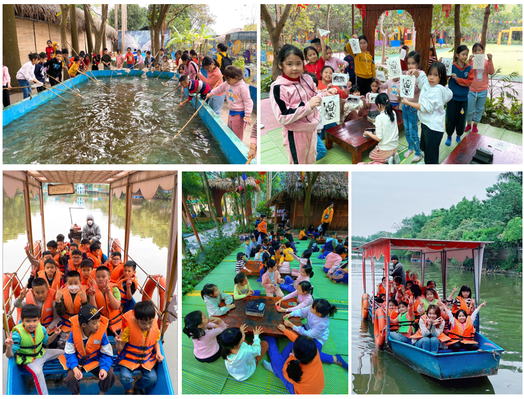 Tiếp đến, các bạn học sinh đã được tham gia các nội dung trải nghiệm các hoạt động gần gũi với vốn sống như nấu cơm, trồng cây,... rồi được tham gia các hoạt động thể thao nâng cao sức khỏe: chơi bóng rổ, đi xe đạp địa hình, chơi golf mini trên cỏ, thi đấu vật. Đồng thời nội dung trải nghiệm còn giáo dục kĩ năng sống cho học sinh như kĩ năng tự phục vụ, kĩ năng tự chăm sóc bản thân, kĩ năng hợp tác làm việc theo nhóm... giúp học sinh tự tin hơn, có thêm các kĩ năng ứng phó với những tình huống diễn ra trong cuộc sống và xã hội. Hoạt động tham quan ngoại khóa nhằm giúp các em vừa chơi, vừa học trong quá trình dã ngoại, tạo tâm thế thoải mái cho các em.