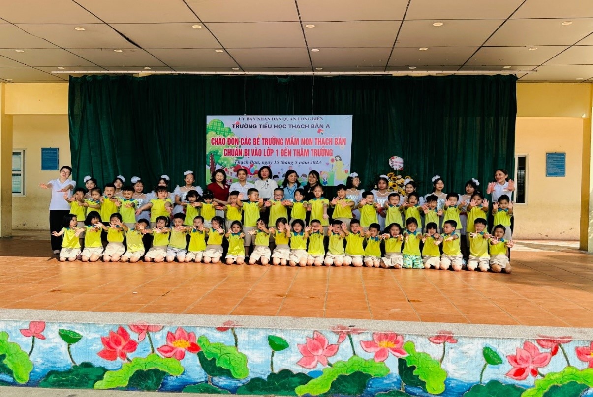 Sáng ngày 15/5/2023, nhà trường phối hợp với trường mầm non Thạch Bàn A, tổ chức hoạt động trải nghiệm ngoại khóa cho các bé mầm non đến thăm quan nhà trường. Đây là một hoạt động NGLL và hoạt động khởi động cho công tác tuyển sinh năm học 2023-2024 của trường tiểu học và cũng là trong chương trình chăm sóc, giáo dục trẻ của các trường mầm non. Hoạt động này giúp cho các bé 5 tuổi có những trải nghiệm thú vị; tạo cho trẻ không khí vui tươi, phấn khởi và hào hứng, giúp trẻ chuẩn bị tâm thế sẵn sàng lên lớp 1.