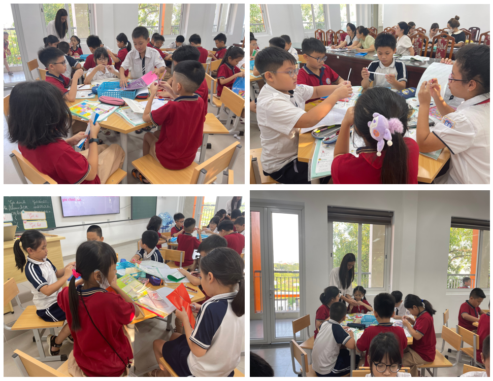 Trong tiết học, qua từng hoạt động học sinh được tự tìm hiểu kiến thức mới dựa trên nền tảng kiến thức đã học, thông qua đó phát huy trí lực của các con. Xuyên suốt bài giảng là phần thực hành lắp ghép các góc từ bộ đồ dùng kỹ thuật, qua đó học sinh nhận diện được đặc điểm của các góc. Điểm nổi bật của tiết học chính là việc lồng ghép giáo dục STEM và các kiến thức liên môn để khơi gợi sự sáng tạo của mỗi học sinh trong lớp.