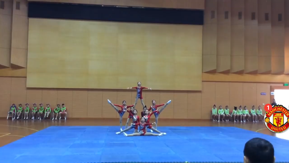 Đội Erobic thi đấu với những động tác khỏe khắn, chính xác