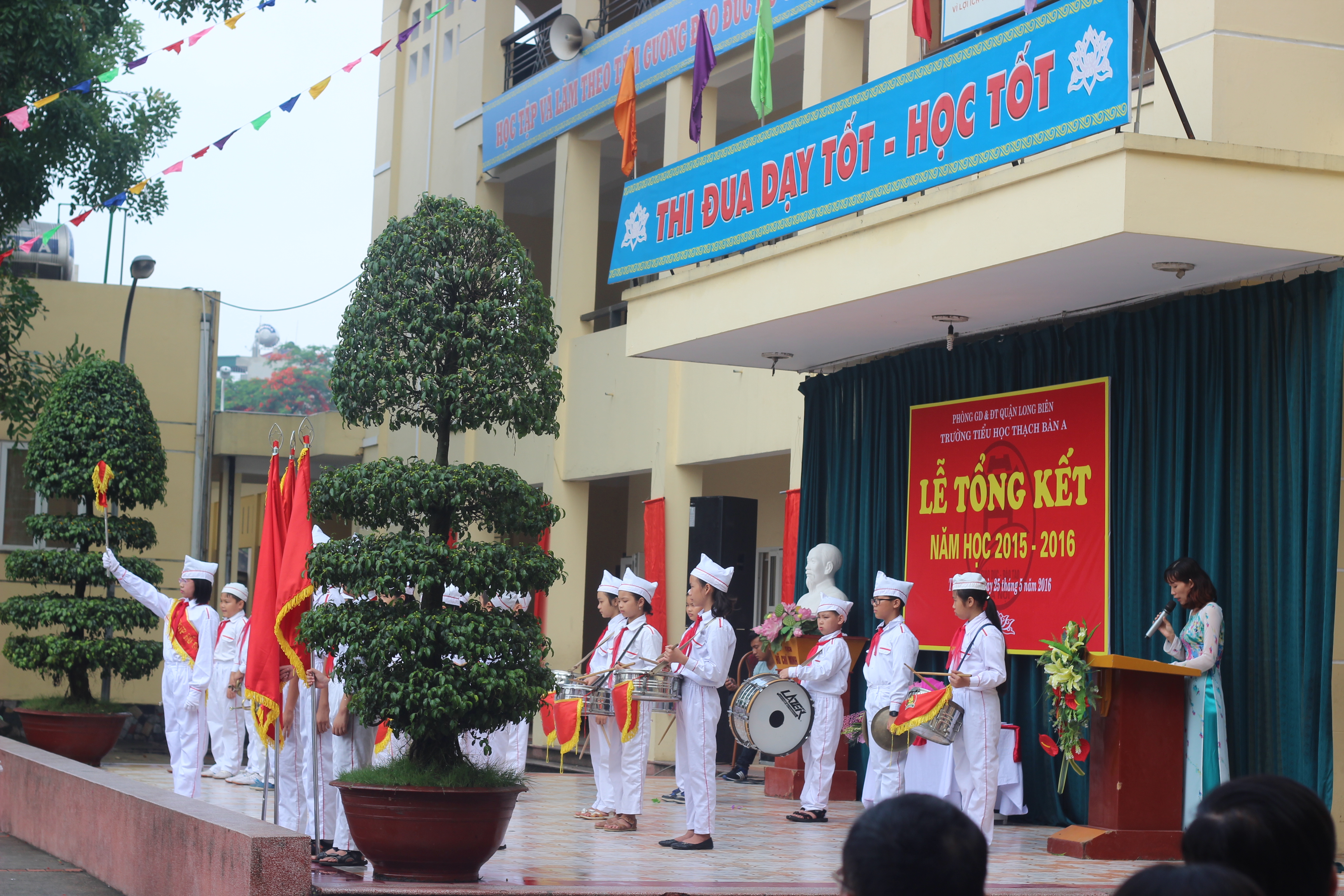 Phát biểu tại lễ tổng kết, đồng chí Nguyễn Văn Cảnh – Quận ủy viên, Phó Bí thư Đảng ủy, Chủ tịch UBND phường Thạch Bàn đã ghi nhận, đánh giá, biểu dương những thành tích đạt được của nhà trường trong năm học 2015 – 2016. Đồng thời đề nghị trong thời gian nghỉ hè nhà trường tiếp tục phối hợp chặt chẽ với các tổ dân phố để tổ chức tốt việc sinh hoạt hè và bảo đảm an toàn tuyệt đối cho học sinh. Bên cạnh đó làm tốt các công tác chuẩn bị cho năm học 2016 – 2017.
