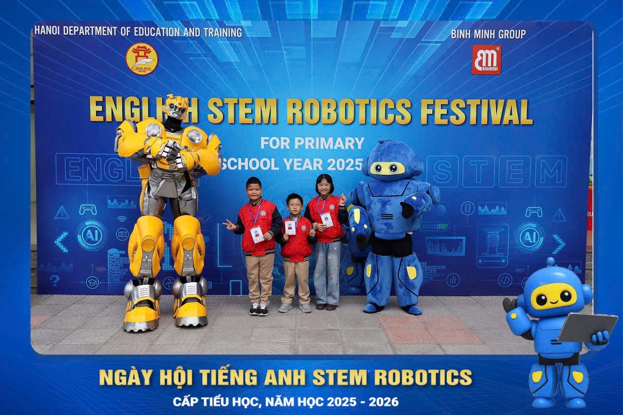 Ngày hội Tiếng Anh STEM Robotics là sân chơi bổ ích dành cho học sinh tiểu học toàn thành phố, nhằm khuyến khích các em phát triển năng lực STEM, khả năng sử dụng tiếng Anh, tư duy công nghệ và tinh thần sáng tạo. Tham gia hoạt động này, học sinh Nhà trường không chỉ được cạnh tranh trong một môi trường học thuật lành mạnh, mà còn có cơ hội giao lưu, học hỏi và thể hiện bản lĩnh của mình trước những thử thách mới.