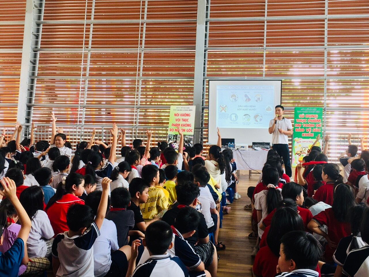 Nhằm nâng cao nhận thức, vai trò, trách nhiệm của học sinh trong việc đảm bảo an toàn thực phẩm và phòng, chống dịch bệnh tại trường học, ngày 19/09/2023 trường Tiểu học Thạch Bàn A phối hợp Trung Tâm Y tế quận Long Biên tổ chức tuyên truyền bảo đảm an toàn thực phẩm và phòng, chống dịch bệnh tại trường học năm học 2023 – 2024 cho 370 em học sinh khối 4, 5.