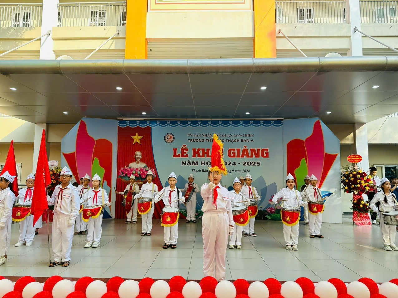 Ngay sau đó, Nhà giáo Lê Thị Thanh Phương - Bí thư Chi bộ, Hiệu trưởng nhà trường lên tuyên bố Khai giảng và đánh trống khai trường. Buổi Lễ khai giảng đánh dấu một năm học mới bắt đầu, với những thách thức mới và những cơ hội mới đặt ra cho tập thể sư phạm nhà trường. Tiếng trống khai trường được cô Hiệu trường điểm lên giòn giã như tiếp thêm một nguồn năng lượng dồi dào cho các thầy cô, các em học sinh bước vào năm học mới trong niềm vui hân hoan, phấn khởi. Trong năm học mới thầy và trò trường Tiểu học Thạch Bàn A sẽ tiếp tục phát huy thành tích đã đạt được và quyết tâm hoàn thành xuất sắc nhiệm vụ được giao trong năm học 2024 – 2025.