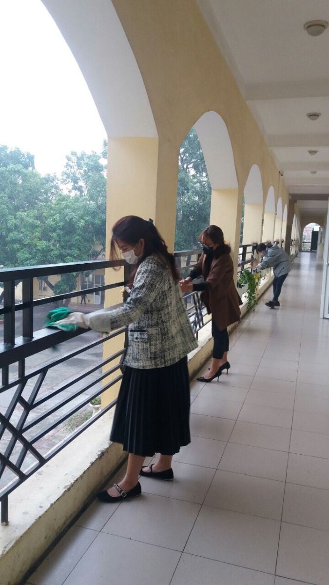 15h00 ngày 07/02/2020 toàn bộ CBGVNV thực hiện tổng vệ sinh lớp học, phòng, các khu vực ngoại cảnh, sân trường, khu phụ cận, các công trình vệ sinh. Thu gom rác thải, phế liệu, phát quang bụi rậm, khơi thông cống rãnh. Đã sử dụng hóa chất khử khuẩn là bột Canxi Hypocloride 70% để lau, phun khử khuẩn bàn ghế, tủ, sàn nhà, hệ thống cửa, cầu thang,... đặc biệt chú trọng lau hóa chất ở vị trí tay nắm cửa, tay vịn cầu thang. Tổng số bột Canxi Hypocloride 70% sử dụng trong đợt tổng vệ sinh môi trường đợt 2 là 92,432gr.
