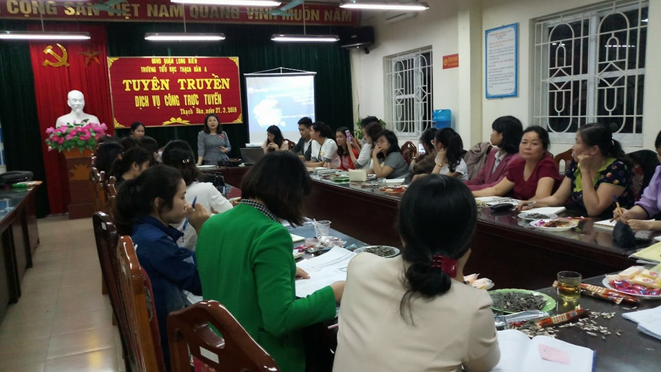 Thực hiện theo Kế hoạch số 32/KH-UBND ngày 10/01/2018 về việc tổ chức tuyên truyền và thi tìm hiểu về dịch vụ công trực tuyến mức độ 3, mức độ 4 tại các trường học trên địa bàn quận Long Biên năm 2018. Vào lúc 17 giờ ngày 27 tháng 3 năm 2018 trường tiểu học Thạch Bàn A đã triển khai tuyên truyền dịch vụ công mức độ 3 và 4 tới toàn thể CBGVNV nhà trường.